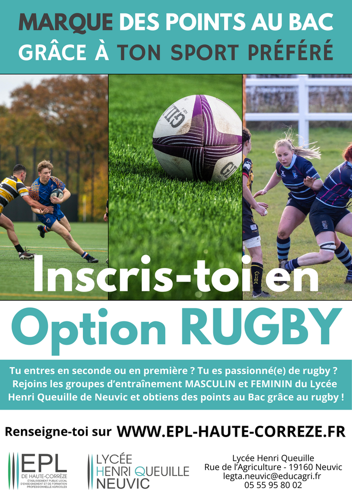 peuvent s'inscrire à deux nouvelles options sportives : l'équitation, en partenariat avec l'Ecurie du Pradeaux de Neuvic, et le rugby, en équipe féminine ou masculine.
