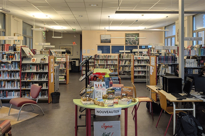 Le CDI du lycée propose, dans un cadre gai et lumineux, un accès à plus de 5 000 ouvrages adaptés à nos formations, dont 1 500 fictions (BD, romans, contes, …), 90 abonnements à des périodiques variés, 400 documents audiovisuels et des informations culturelles et locales.