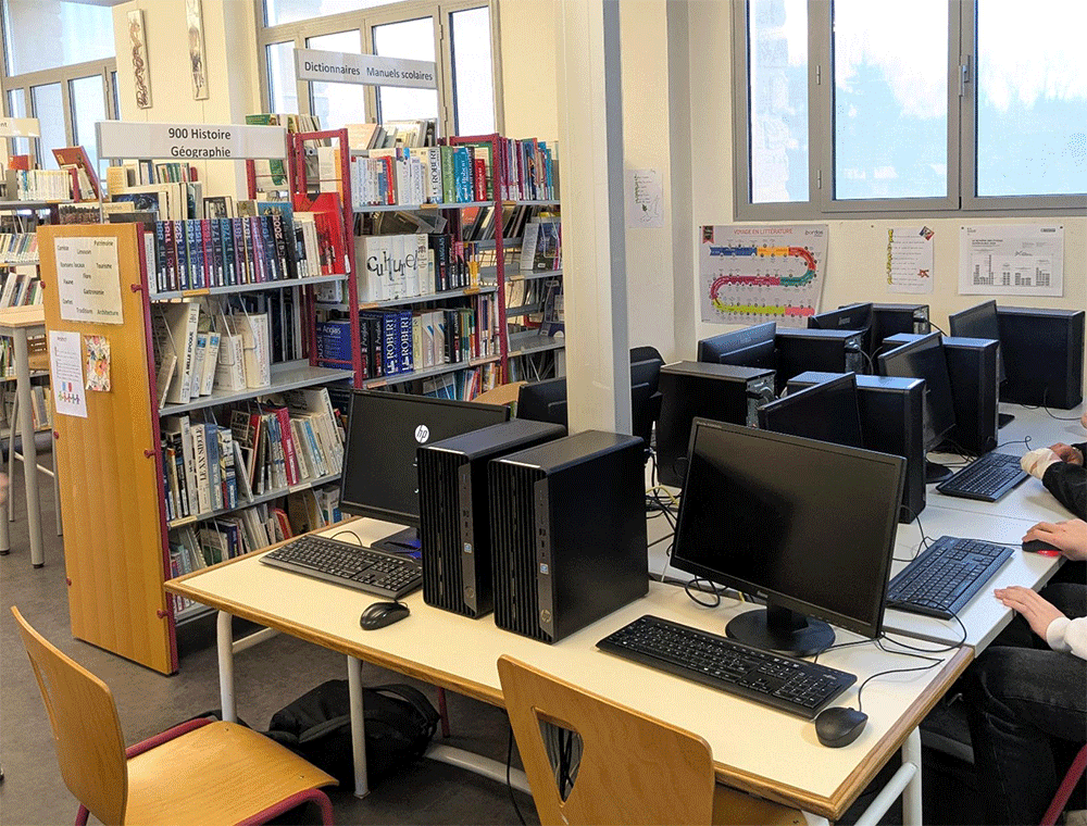 Une salle de cours attenante au CDI permet aux documentalistes de mener les cours de recherche documentaire (BTS et